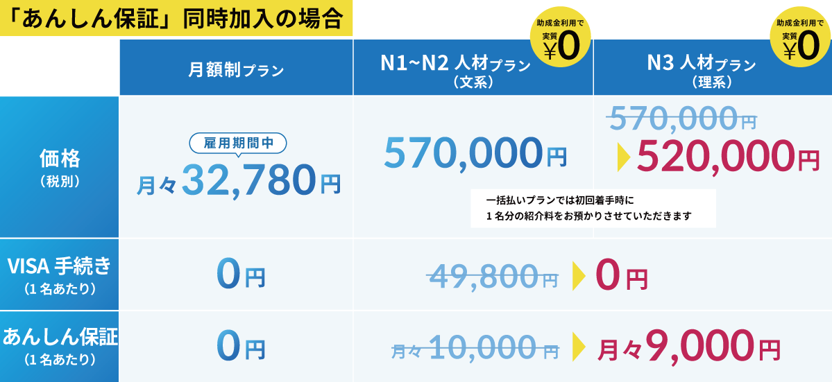 外国籍の人材を採用したときに、万が一退職した場合に、何度でも再面接が受けられるサービスなどです。